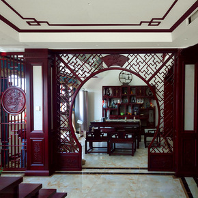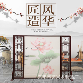 新中式屏风隔断客厅办公室入户玄关双面图案实木遮挡装...