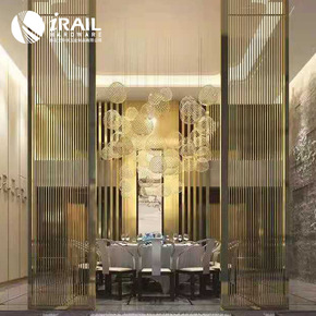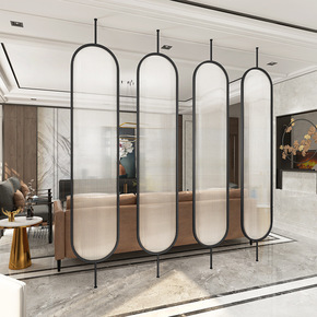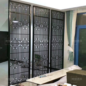 铁艺屏风隔断客厅酒店装饰办公室餐厅木纹竖条免打孔玄...