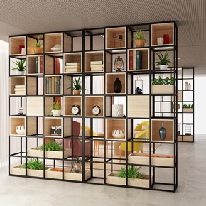 办公室屏风隔断铁艺隔断置物架餐厅展示架咖啡厅装饰书...
