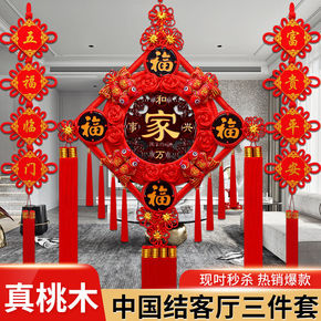 福字中国结挂件中国风家居装饰客厅大号桃木背景墙玄关...
