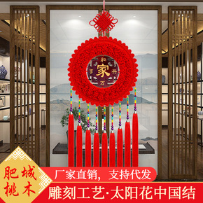 圆形太阳花中国结挂饰客厅大号桃木福字挂件玄关餐厅背...