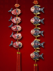 中国结鱼挂件客厅新年春节挂件双鱼挂件弯鱼直鱼挂饰过...