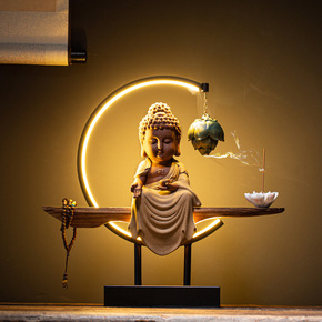 新中式禅意观音菩萨如来佛像摆件陶瓷倒流香炉客厅供奉...