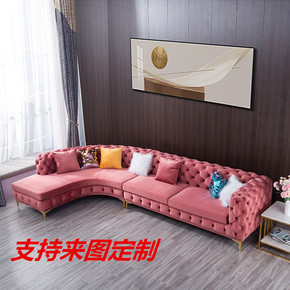 意式轻奢粉色布艺沙发拉扣转角27度北欧别墅客厅科技...