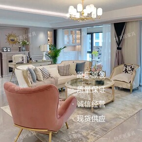 货号:无 风格:轻奢风 颜色:4人沙发2.6米拆装、贝壳茶几、椭圆茶几、配套长方形1桌4椅、...