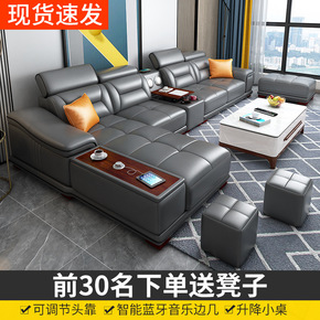 .厂家批发沙发头层牛皮轻奢现代客厅小户型智能贵妃沙...