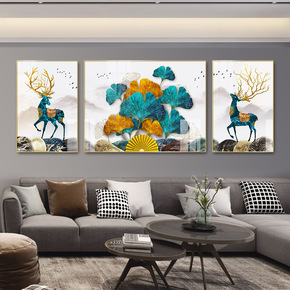 米范家 北欧沙发背景墙挂画油画简约大气客餐厅墙壁画...