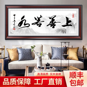 新中式入门走廊茶室禅意山水壁画沙发背景现代装饰画玄...