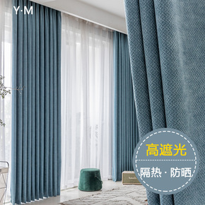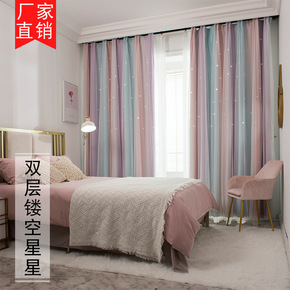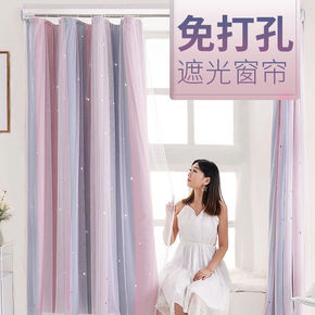 魔术贴窗帘免打孔安装卧室遮光网红镂空星星渐变双层一...