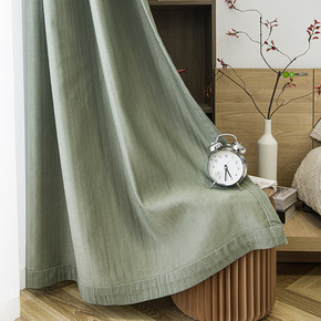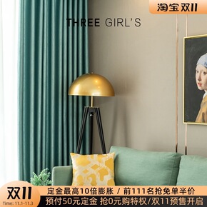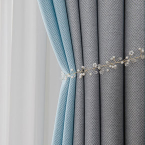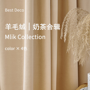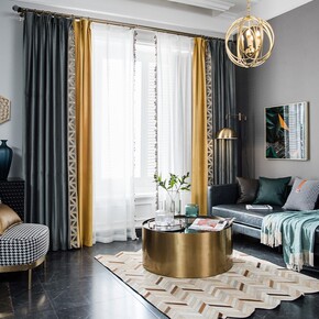 轻奢风格客厅天鹅丝绒灰黄色拼接北欧高档窗帘布料成品...