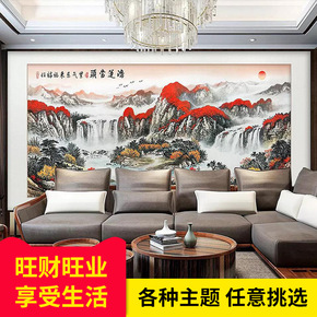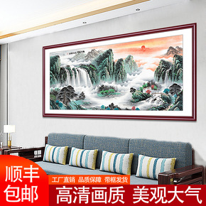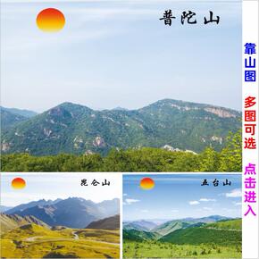 靠山图招财风水海报普陀山昆仑山五台山风景画客厅办公...