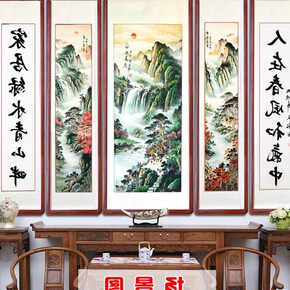 中堂农村五件套过贺寿对联挂画靠山过年堂屋风水三件客...