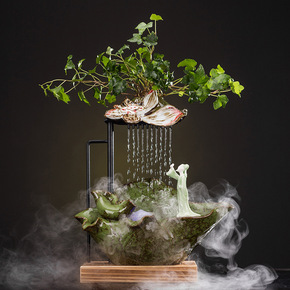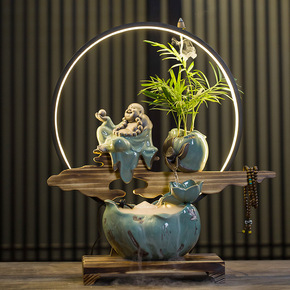 陶瓷灯圈流水喷泉景观摆件鱼缸客厅风水招财办公室桌面...