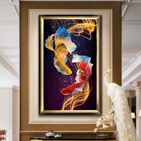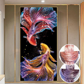新款锦鲤孔雀鱼十字绣竖版玄关客厅鲤鱼招财锦鲤钻石画...