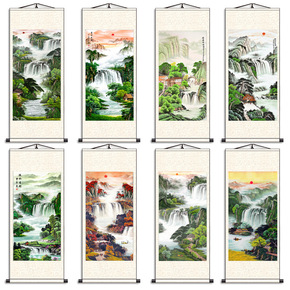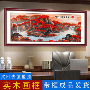 流水生财客厅山水画挂画办公室背景鸿运当头竖版风水靠...