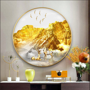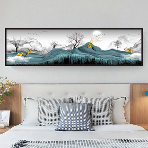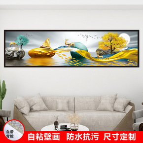 新中式自粘壁画客厅沙发背景墙装饰贴画卧室床头画麋鹿...