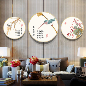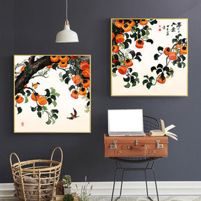 鸿运当头客厅装饰画现代中式沙发背景墙实木框挂画办公...