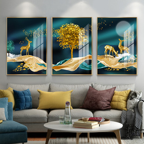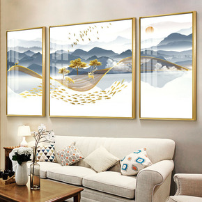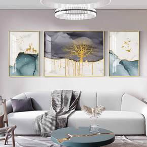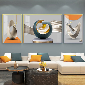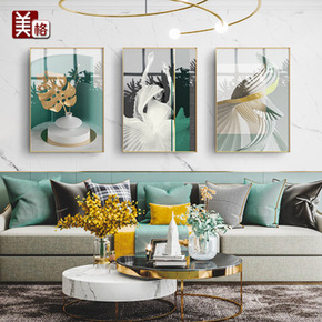 客厅装饰画现代简约沙发背景墙酒店晶瓷壁画三联画组合...