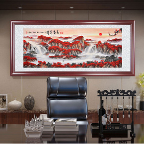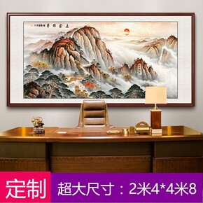 有山无水国画办公室泰山日出靠山图迎客松客厅沙发背景...