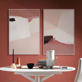 侘寂风客厅装饰画沙发背景墙挂画抽象粉色壁画北欧落地...