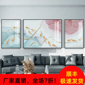 年年有余客厅装饰画沙发背景墙挂画现代简约三联画大气...