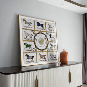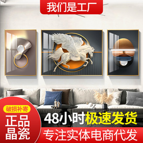 现代轻奢客厅装饰画沙发背景墙骏马简美风格玄关餐厅美...