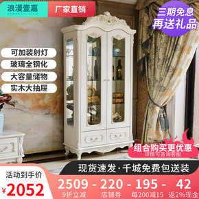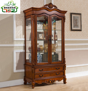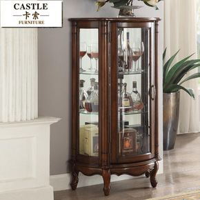 美式实木单双门雕花玻璃酒柜客厅展示柜靠墙家用欧式门...