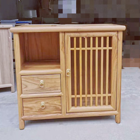 北欧现代简约餐边柜家用 日式客厅藤编酒柜 实木轻奢...