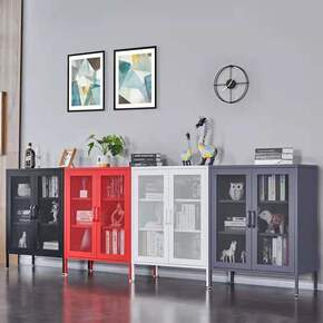新中式酒柜简约现代轻奢灰色钢化玻璃门客厅展示储物书...
