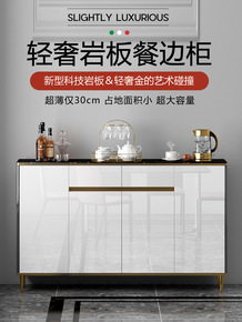 轻奢岩板餐边柜超薄现代简约客厅茶水柜酒柜一体靠墙储...