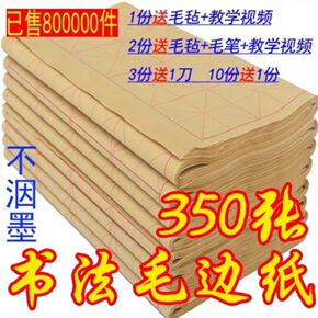 买2送1嫩青竹浆毛边纸米字格书法专用纸加厚半生半熟...