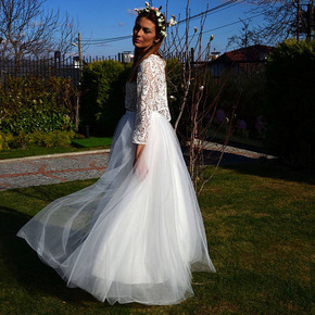 欧美白色网纱半身裙新女款高腰粉色拖地长裙松紧腰婚礼...