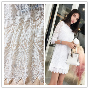 厂家直销 32S全涤孔雀羽绣花网布 宫廷风婚纱礼服...