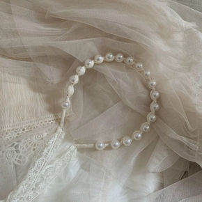 新款蕾丝珍珠发箍法式宫廷优雅仙女古风头饰系带蝴蝶结...