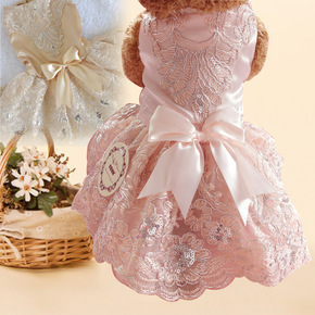 新款夏季宠物狗狗猫咪婚纱裙子 泰迪比熊绣花蕾丝绣花...