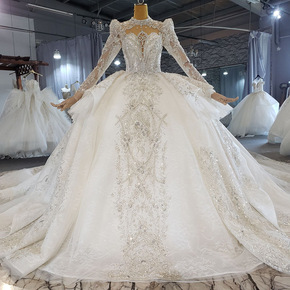 2021年新款缎面V领大拖尾婚纱结婚主纱宫廷风...
