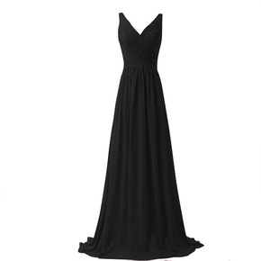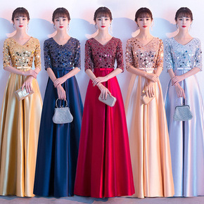 合唱团礼服女晚礼服优雅长款一字肩飘袖V领主持人礼服...