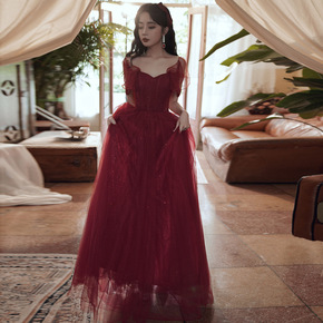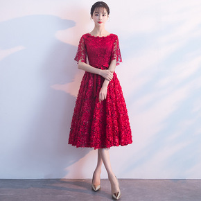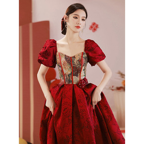 敬酒服新娘夏季结婚晚礼服裙酒红色小个子平时可穿气质...