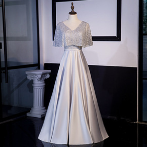晚礼服女2021新款小个子灰色生日派对连衣裙小礼服...