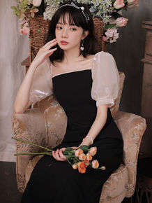 洋装小晚礼服平时可穿露背蝴蝶结生日订婚连衣裙日常小...