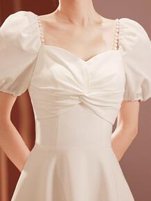 小晚礼服裙气质一字肩小个子夏季订婚领证登记白色连衣...