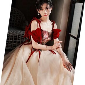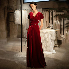 敬酒服新娘2022新款结婚酒红色气质长款订婚晚礼服...