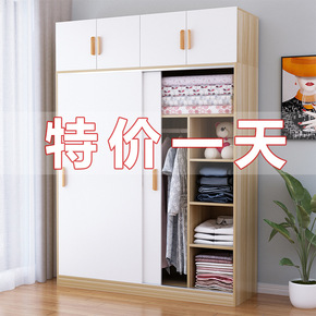 衣柜家用卧室出租房用推拉门简易小型柜子储物柜实木组...