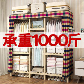 衣柜家用卧室现代简约收纳神器出租房用实木组装简易收...