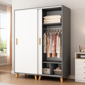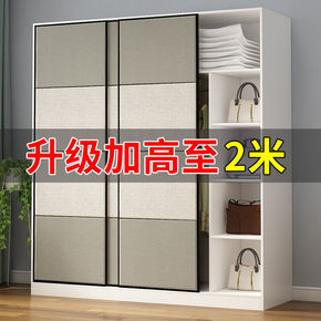 简易衣柜家用卧室实木推拉门组装衣橱出租房用简约现代...