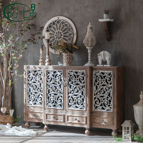 美式复古餐边柜做旧收纳柜 雕花民宿客厅玄关柜 家用...