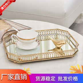 欧式复古甜品树脂镜面托盘婚庆水果蛋糕首饰收纳盘家居...