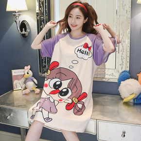 睡裙女夏季2022年新款纯棉短袖薄款可爱卡通胖MM...