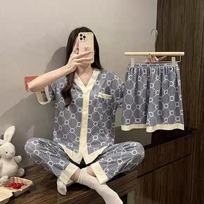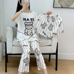 冰丝睡衣女夏款短袖三件套卡通薄款2022年新款夏季...