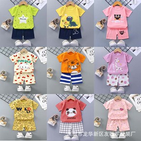 外贸库存童装厂家批发 夏季地摊儿童短袖t恤套装两件...